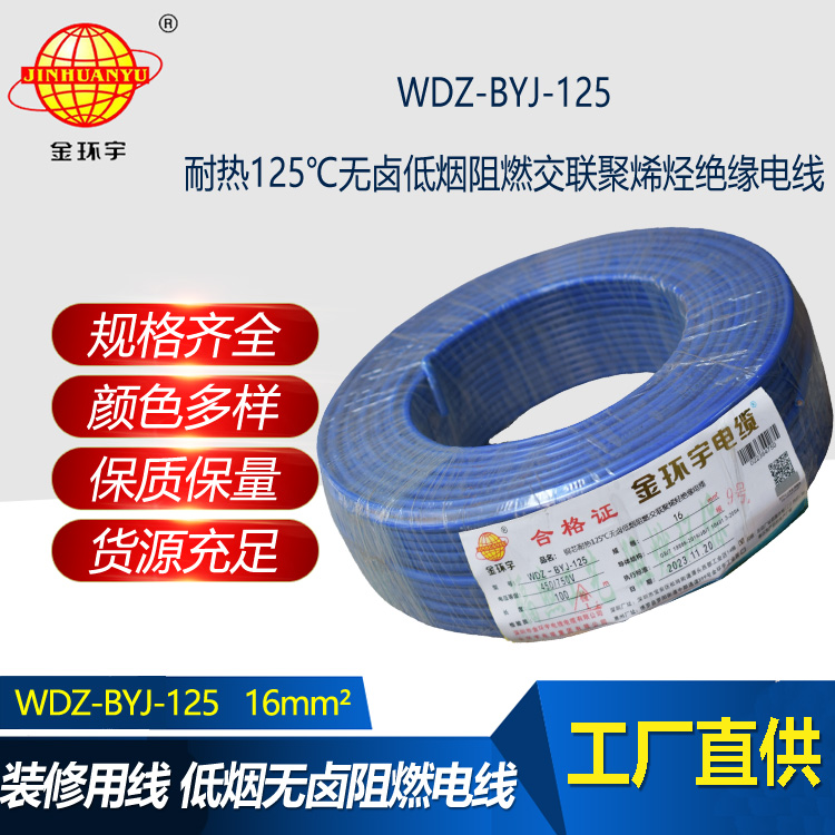 WDZ-BYJ-125:即為低煙無鹵阻燃電線,是指電線的絕緣層材料鹵素物質(zhì),在燃燒的情況下,不釋放含鹵氣體,煙霧濃度低,參照標(biāo)準(zhǔn)為JB/T 10491-2004,型號(hào)有WDZA-BYJ、WDZB-BYJ、WDZC-BYJ等,