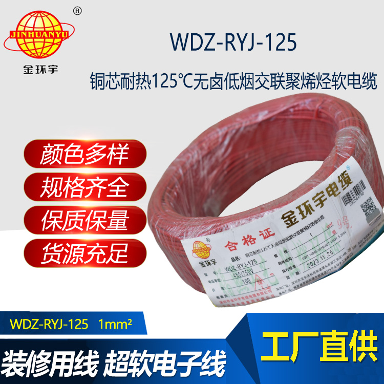 金環(huán)宇電線 耐熱125℃低煙無鹵阻燃軟電線WDZ-RYJ-125電線1平方