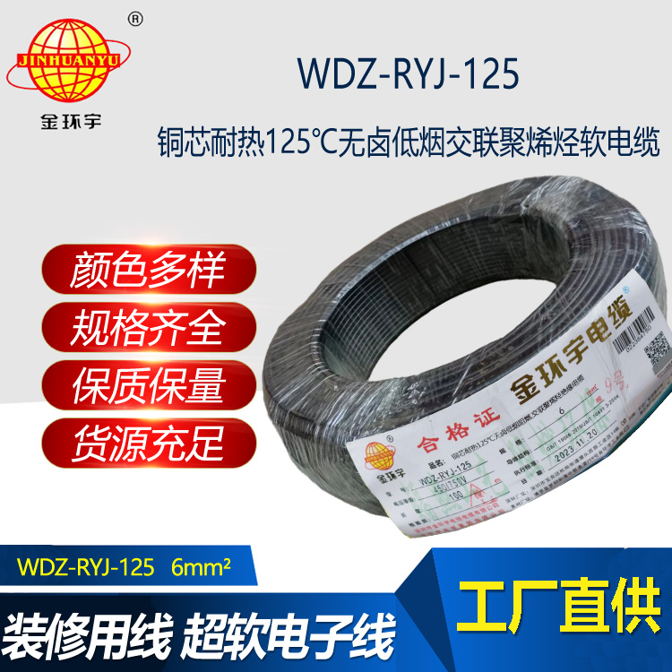 金環(huán)宇電線 銅芯電線WDZ-RYJ-125布電線6平方耐熱低煙無鹵阻燃電線