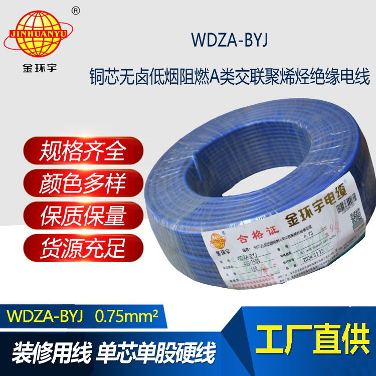 WDZA-BYJ金環(huán)宇電線 WDZA-BYJ 0.75 低煙無鹵阻燃A級(jí)家裝電線 硬線
