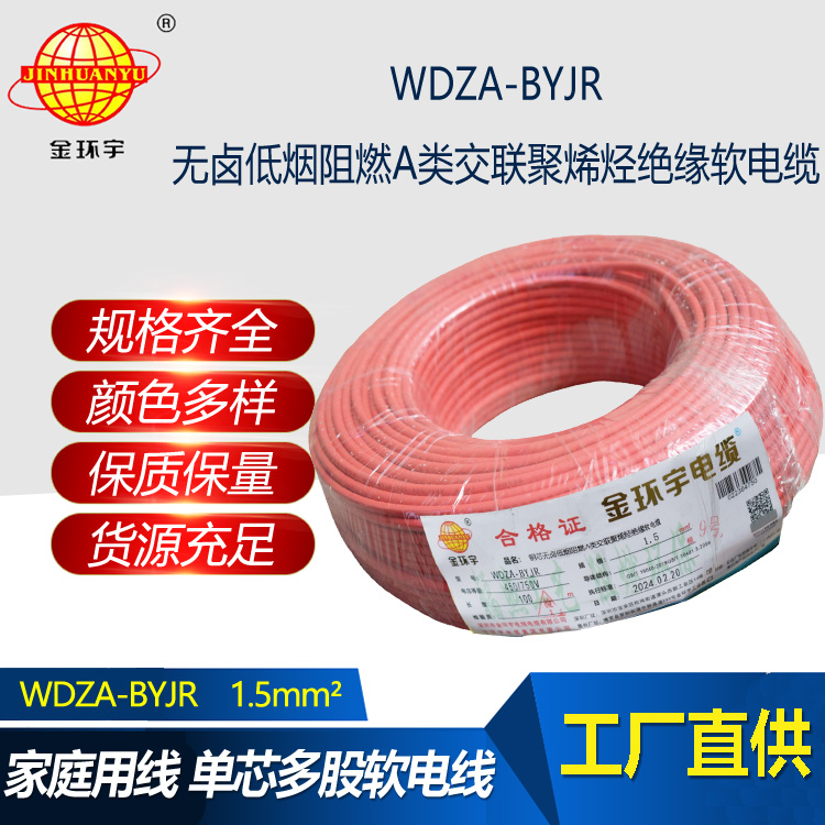金環(huán)宇電線 低煙無(wú)鹵線纜廠家 WDZA-BYJR 1.5平方 bvr電線報(bào)價(jià)