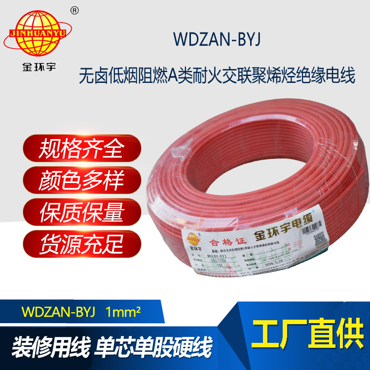金環(huán)宇電線 a類阻燃耐火電線WDZAN-BYJ 1平方 深圳低煙無鹵電線廠
