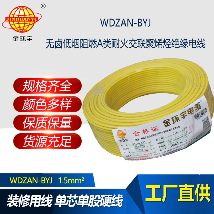 金環(huán)宇電線 低煙無鹵阻燃耐火硬電線WDZAN-BYJ 1.5平方家裝電線