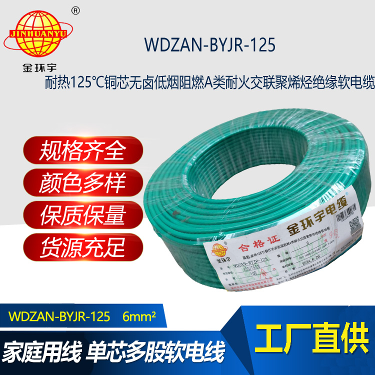金環(huán)宇電線電纜 WDZAN-BYJR-125耐熱低煙無鹵阻燃耐火家裝電線 6平方軟電線
