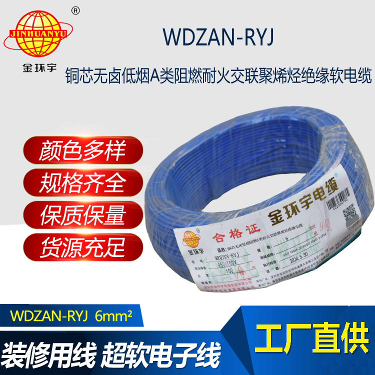WDZAN-RYJ 低煙無(wú)鹵阻燃耐火電線,采用銅芯,A類耐火交聯(lián)聚烯烴絕緣,適用于額定電壓450/750V及以下的固定布線和電力、電子設(shè)備內(nèi)部連...