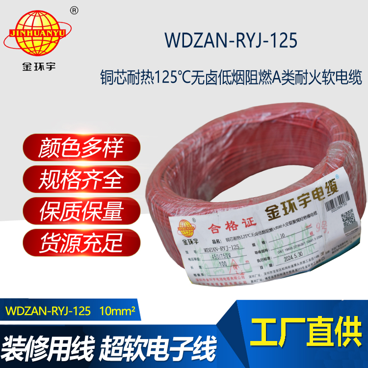 金環(huán)宇電線電纜 深圳WDZAN-RYJ-125電線10平方 a級阻燃耐火無鹵低煙電線