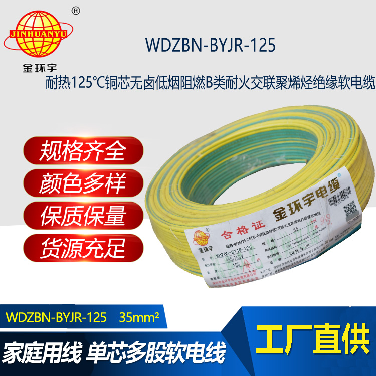 金環(huán)宇電線電纜 WDZBN-BYJR-125阻燃耐火低煙無鹵電線35平方絕緣軟電線