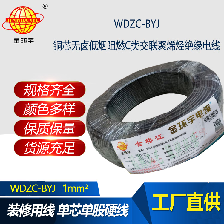 金環(huán)宇電線 WDZC-BYJ 1平方低煙無(wú)鹵阻燃c類電線 單芯家裝電線