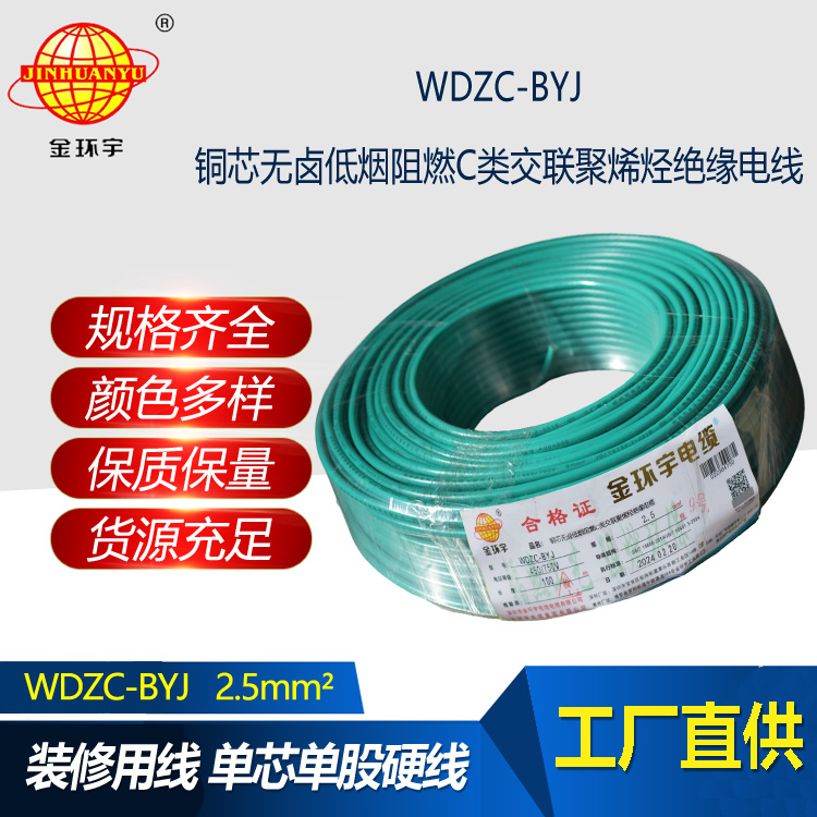 金環(huán)宇電線 低煙無鹵阻燃電線WDZC-BYJ 2.5平方塑銅電線 布電線
