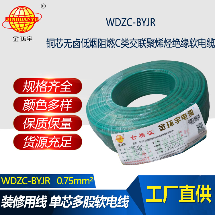 WDZC-BYJR指低煙無鹵阻燃聚烯烴護套,交聯聚乙烯絕緣軟電線。WDZC分別是無鹵、低煙、阻燃、聚烯烴,B指電線,YJ是交聯聚乙烯絕緣,R是軟。