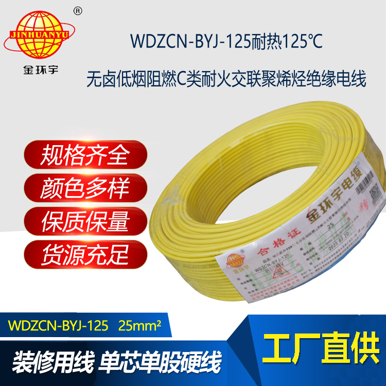 WDZCN-BYJ-125:即為銅芯耐熱125℃無(wú)鹵低煙阻燃C類(lèi)耐火交聯(lián)聚烯烴絕緣電線(xiàn),是指電線(xiàn)的絕緣層材料鹵素物質(zhì),在燃燒的情況下,不釋放含鹵氣體,煙霧濃度低,參照標(biāo)準(zhǔn)為JB/T 10491-2004,型號(hào)有WDZAN-BYJ-125、WDZBN-BYJ-125、WDZCN-BYJ-125等,