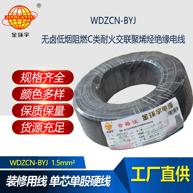 金環(huán)宇電線電纜 c類阻燃耐火電線WDZCN-BYJ 1.5平方低煙無鹵電線
