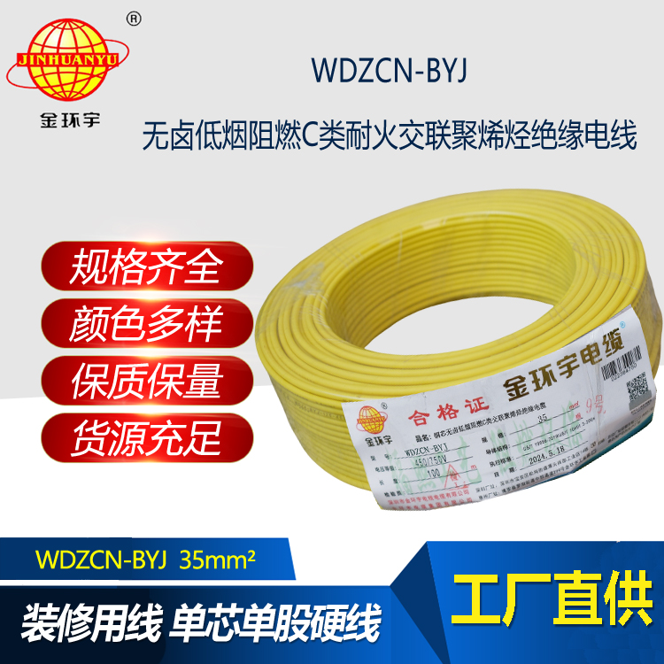 金環(huán)宇電線電纜 無(wú)鹵低煙阻燃c類耐火電線WDZCN-BYJ 35平方 裝修布電線