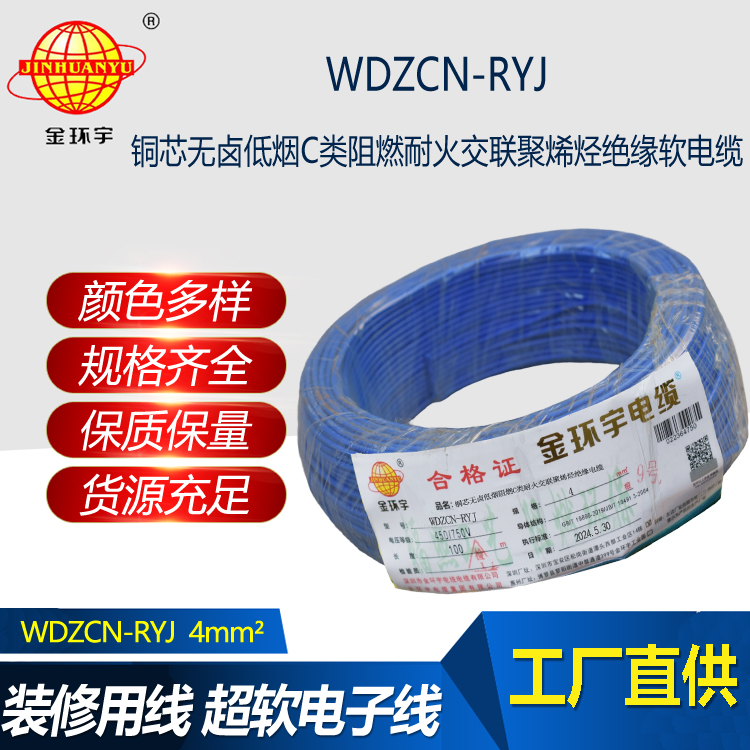 WDZCN-RYJ電纜:全稱C級阻燃耐火低煙無鹵交聯(lián)聚烯烴絕緣布電線,執(zhí)行標準GB/T19666-2005。