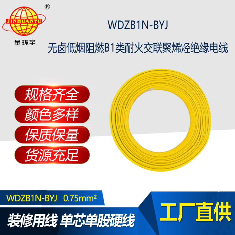 金環(huán)宇電線 布電線 無鹵低煙阻燃B1級(jí)耐火電線WDZB1N-BYJ 0.75平方