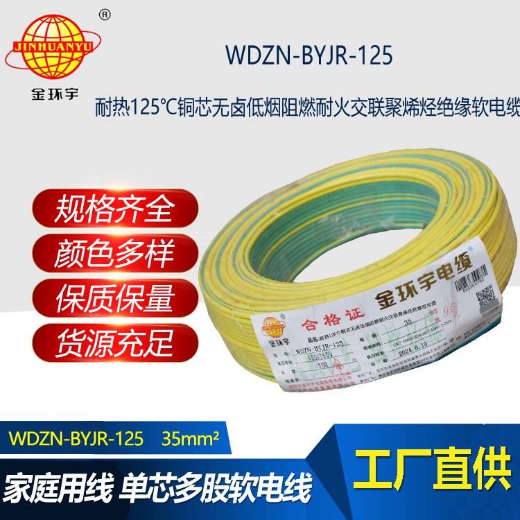 金環(huán)宇電線電纜 低煙無鹵阻燃耐火軟銅線WDZN-BYJR-125單芯多股軟電線35平方