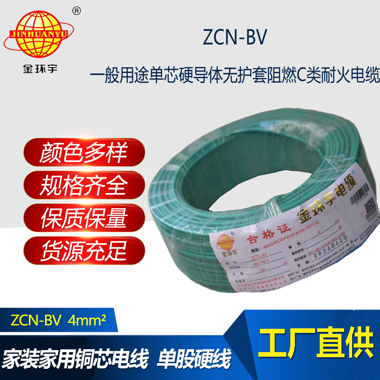 金環(huán)宇電線電纜 ZCN-BV 4平方 bv硬電線 阻燃耐火電線電纜 深圳廠家