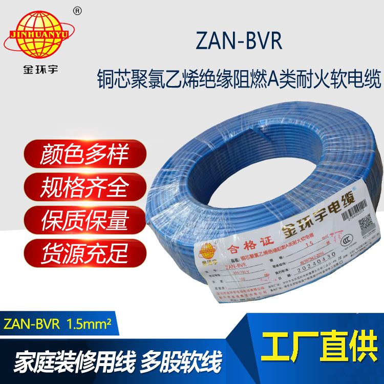 ZAN-BVR阻燃A類耐火軟電線,專為項目工程人員、建筑人員、裝修人員而設計。銅芯聚氯乙烯絕緣,具有A類耐火特性,安全可靠。適用于450/750V以下交流額定電壓的固定敷設,廣泛用于家...
