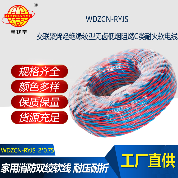 WDZCN-RYJS:低煙無鹵交聯(lián)聚烯烴絕緣C類阻燃耐火雙絞線;是消防用低煙無鹵阻燃耐火聚烯烴絕緣連接軟線是參照GB/T5023-2008等標準制訂的,其耐火特性符合GB/Tl9666類的要求。