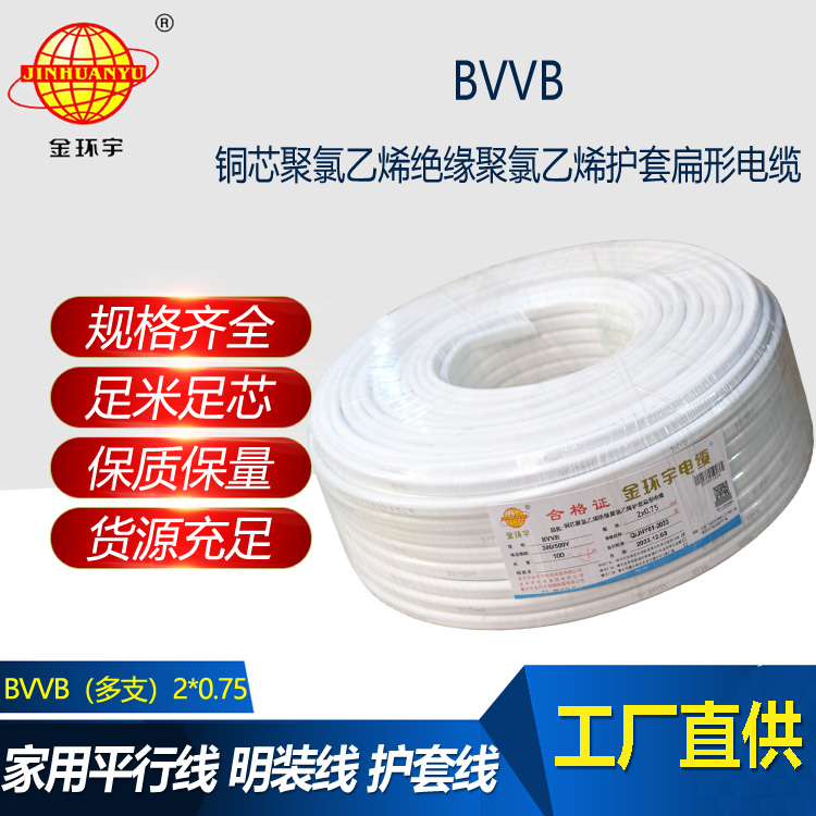 BVVB 銅芯聚氯乙烯絕緣聚氯乙烯護(hù)套平型電纜,適用于交流電壓450/750V及以下動(dòng)力裝置、日用電器、儀表及電信設(shè)備用的電纜電線。
