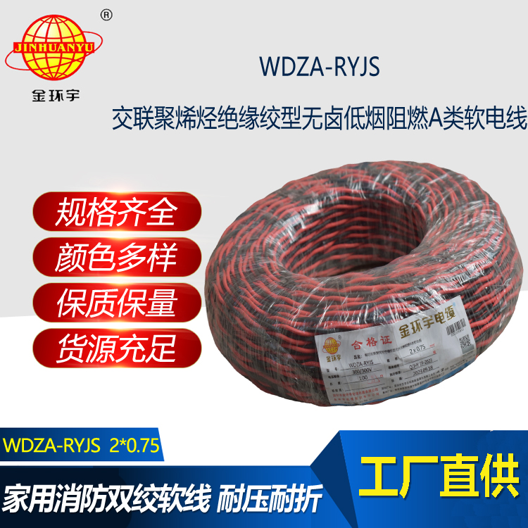 WDZA-RYJS:低煙無鹵交聯(lián)聚烯烴絕緣a類阻燃雙絞線;是消防用低煙無鹵阻燃聚烯烴絕緣連接軟線是參照GB/T5023-2008等標準制訂的,其耐火特性符合GB/Tl9666類的要求。