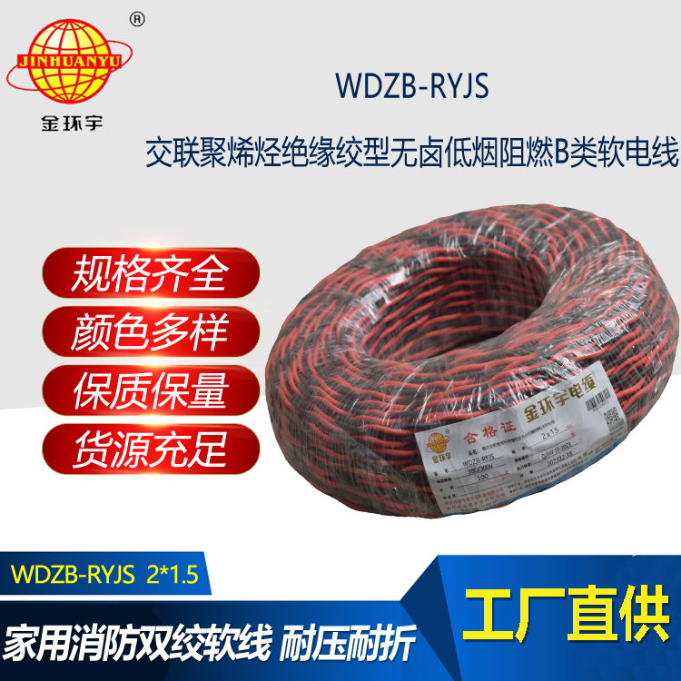 WDZB-RYJS:低煙無鹵交聯(lián)聚烯烴絕緣B類阻燃雙絞線;是消防用低煙無鹵阻燃聚烯烴絕緣連接軟線是參照GB/T5023-2008等標準制訂的,其耐火特性符合GB/Tl9666類的要求。