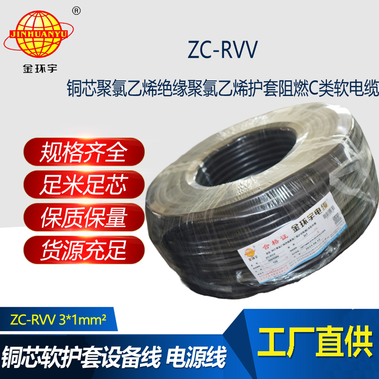 金環(huán)宇電線電纜 c類阻燃電纜ZC-RVV 3X1平方 三芯rvv電源線