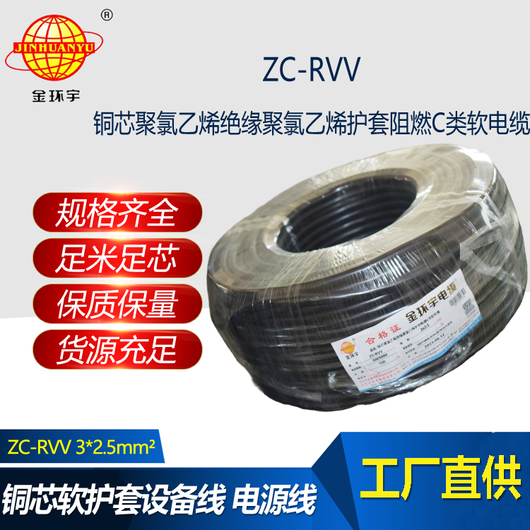 金環(huán)宇電線電纜 ZC-RVV3*2.5平方阻燃電纜ZC電源線 足米足量