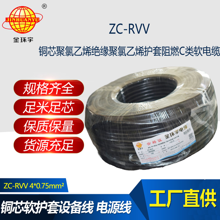 金環(huán)宇電線電纜 阻燃c類電纜ZC-RVV4芯0.75平方 控制信號(hào)電纜