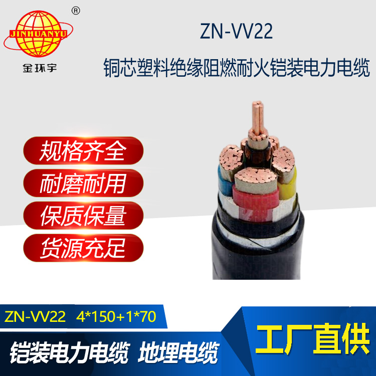 ZN-VV22銅芯阻燃耐火電力電纜用于交流額定電壓Uo/U為0.6/1kV及以下的輸配電線路上。