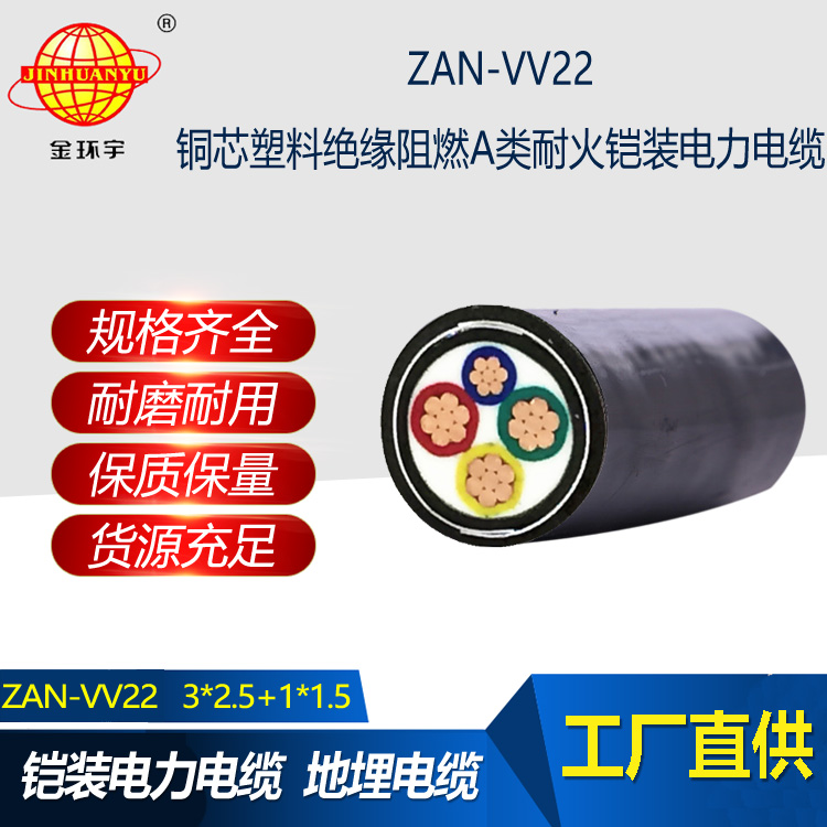 金環(huán)宇電線電纜 鎧裝電力電纜ZAN-VV22-3x2.5+1x1.5阻燃a類耐火電纜