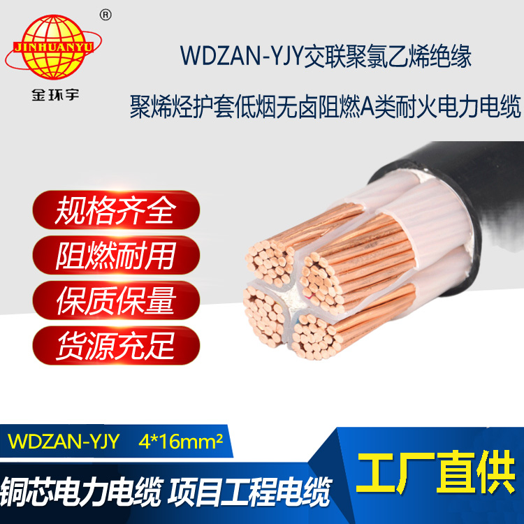 金環(huán)宇電纜 WDZAN-YJY 4X16平方A級(jí)阻燃耐火電線電纜低煙無鹵電纜