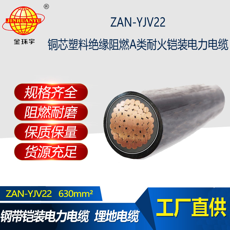 ZAN-YJV22電纜:銅芯交聯(lián)聚乙烯絕緣聚氯乙烯護(hù)套鋼帶鎧裝A類阻燃耐火型電力電纜,