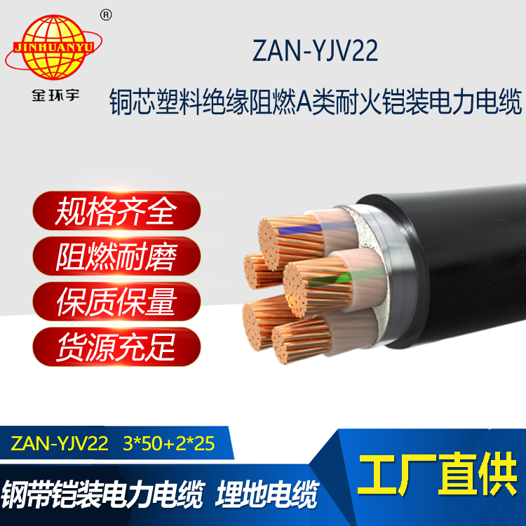 ZAN-YJV22電纜:銅芯交聯(lián)聚乙烯絕緣聚氯乙烯護(hù)套鋼帶鎧裝A類阻燃耐火型電力電纜,
