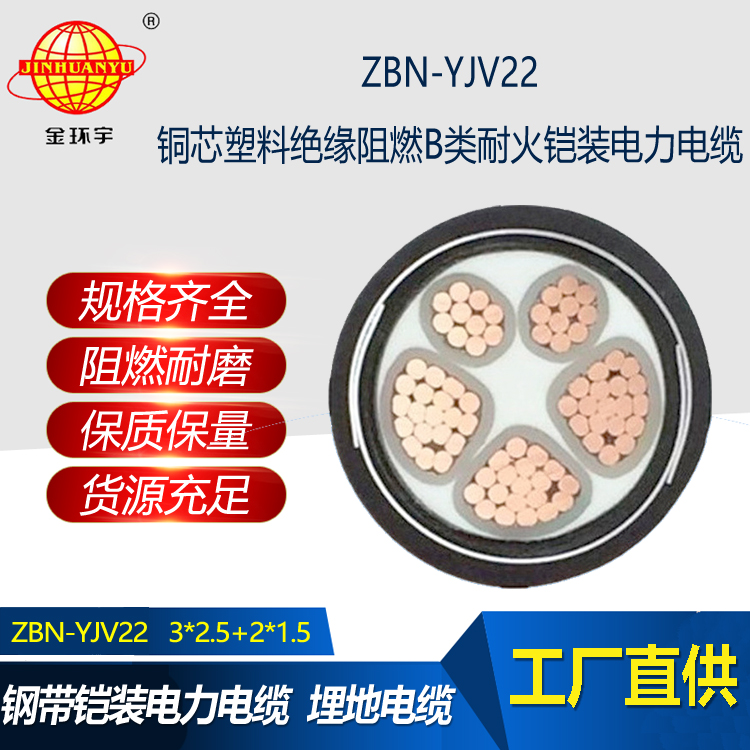 金環(huán)宇電線電纜 3+2芯鎧裝電纜ZBN-YJV22-3X2.5+2X1.5阻燃耐火電力電纜